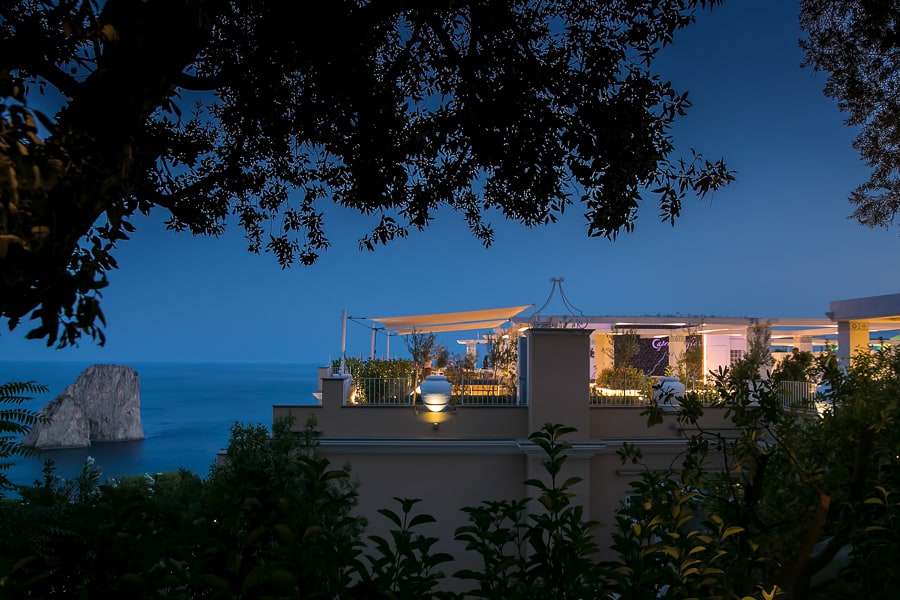 a clifftop terrace directly facing Capri's dramatic Faraglioni.